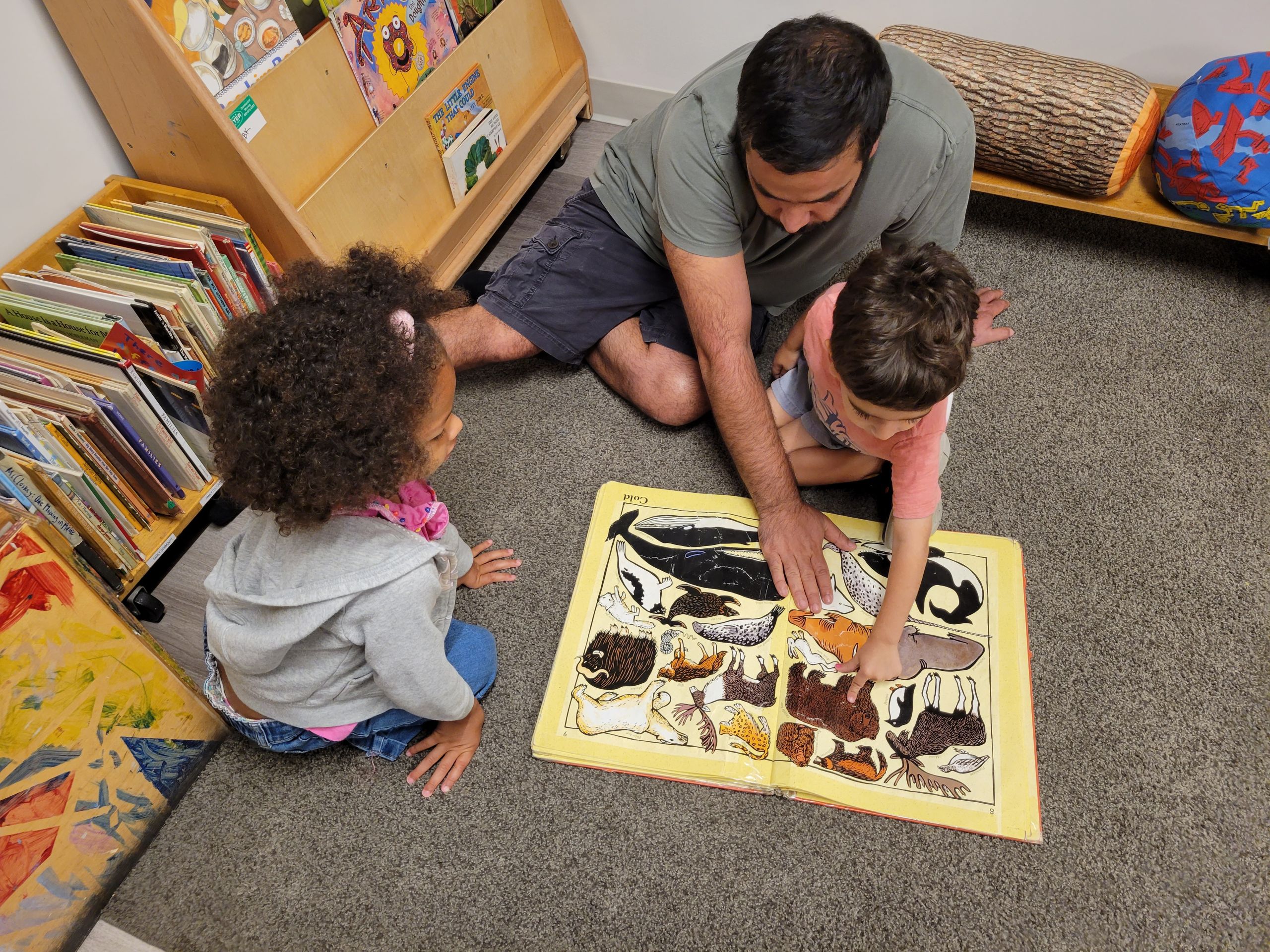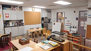 The materials in the classroom offer children the chance to engage in learning possibilities through the use of block building, painting and drawing, stories, social studies, science experiments and neighborhood community walks.
